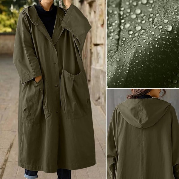 No more fussing with tight, restrictive raincoats. The generous cut allows you to layer comfortably over any outfit, so you can enjoy your day without feeling constrained. Arrive at your destination looking polished and feeling great.