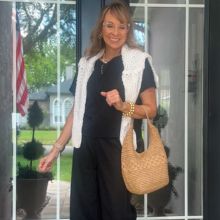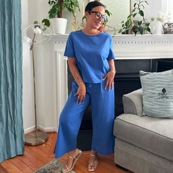 I pair the top with light denim jeans for a casual coffee run. I wear the trousers with a fitted white tee and sandals for the farmers market. I’ve even dressed up the set with heels and statement earrings for dinner out.