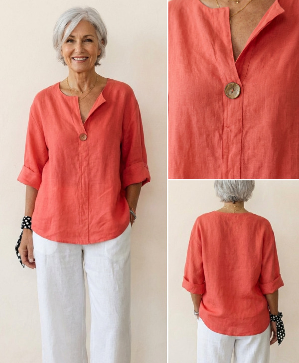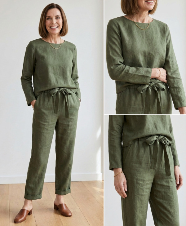 The women who always look the most put-together aren’t the ones in perfectly pressed synthetic blouses. They’re the ones in relaxed, beautifully textured natural fabrics that move with them. Linen has a natural “lived-in” quality that no synthetic fabric can replicate — and it only improves throughout the day.