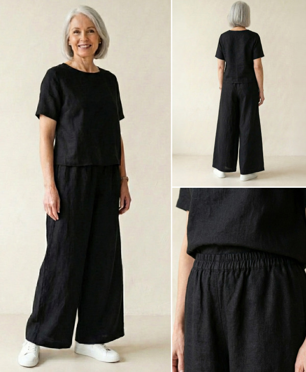 A well-chosen natural fabric set – particularly a monochrome two-piece in linen or cotton – is one of the most versatile things you can own. The top works with other trousers. The trousers work with other tops. The full set works for a garden lunch, a coastal walk, an evening out, or a long-haul flight.